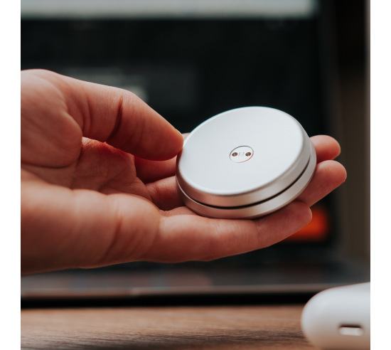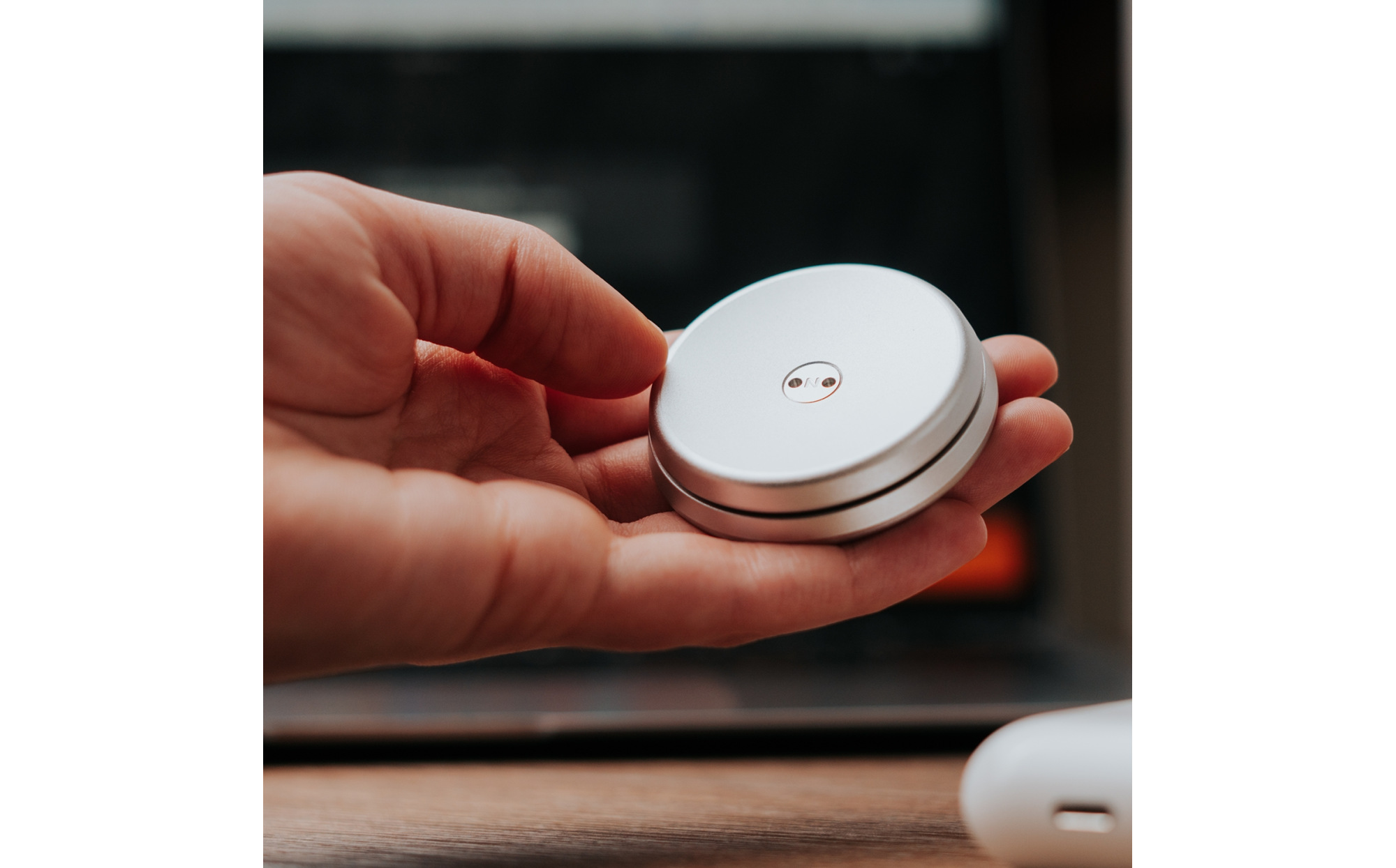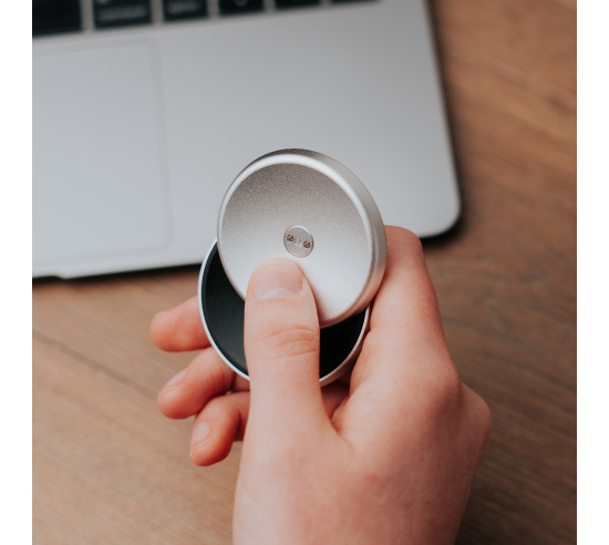 Inspired by the satisfying motion of shuffling two poker chips, the ONO™ Slider calms the mind and brings your attention to the present moment through an endless, circular motion of two sliding lightly magnetized disks. Concave in shape, the Slider is ergonomically designed to fit with your hands' natural range of motion.