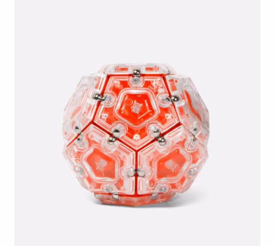 Geode is a geometric sphere made from 12 pentagonal tiles. each tile has 5 magnets that spin so the pieces will connect from any angle. Smash the sphere and stack the tiles into unlimited shapes. Ages 14+ only.