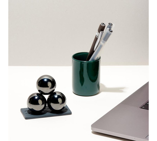 Click, clack, rack and roll! Three large 1.3" magnetic balls provide hours of entertainment. Super strong magnets defy gravity and allow for all kinds of neat tricks. Popular gunmetal color.