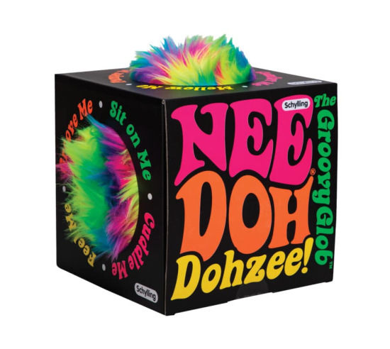 This extra shaggy, soft, and snuggable Dohzee is next level! Furry Dohzee is coated in a vibrant rainbow plush and has the most perfect pillowy squish. Just like a classic Nee Doh, one squeeze will turn your mood mellow. What do you do with a Dohzee?… What don’t you do?! Whether you’re binging your favorite shows, goofin’ off, or just in need of a soul-soothing sidekick, your Dohzee will be there to toss, cuddle, squish, and squeeze.