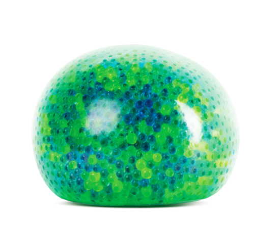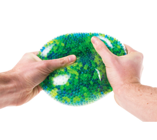 This gigantic stress ball is filled with beads and large enough for both hands to be engaged in stress relief. 5" diameter