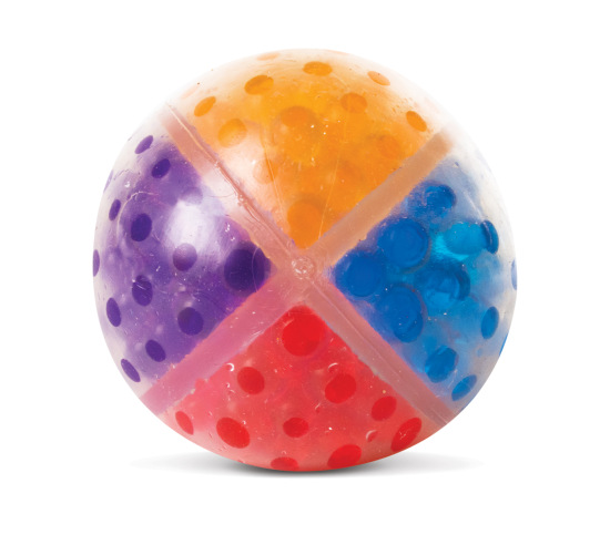 With four compartments and colors, this quad ball will calm you while you squeeze. In a poly header bag.