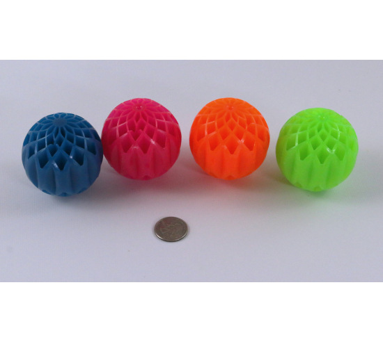 Colorful high-bounce balls feature a cool, squishable geometric pattern inside. Come in assorted bright colors, buy more than one for variety.