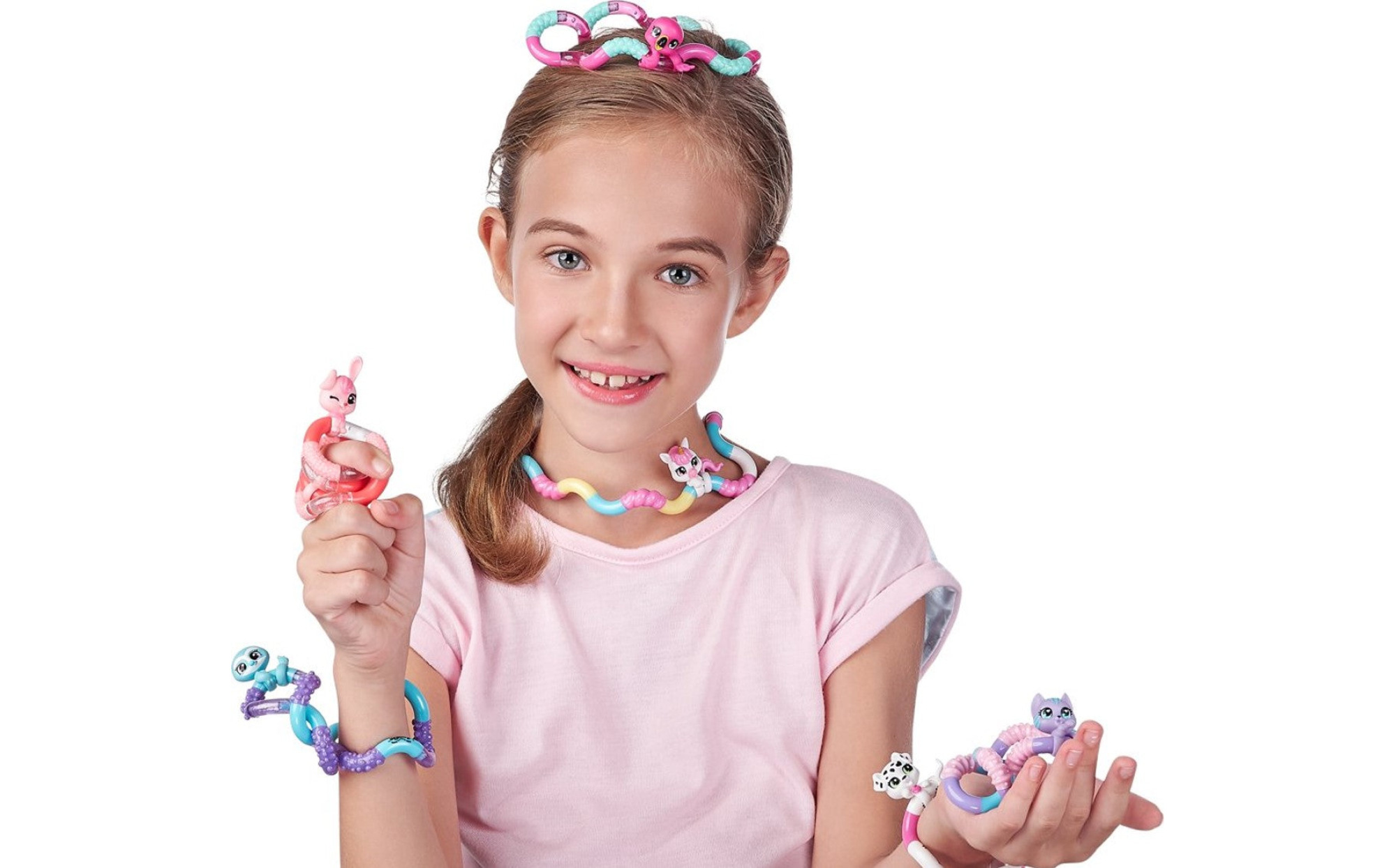 The Tangle Jr. Pets Series offers six charming animals—Kitty, Bunny, Puppy, Sloth, Unicorn, and Flamingo—each with a unique, tactile design that invites gentle twisting and turning.