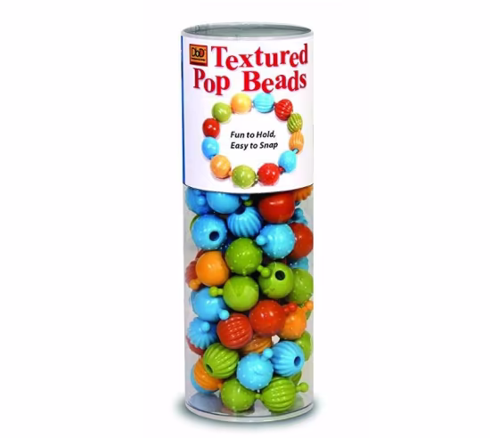 Pop beads feature a textured surface to increase tactile awareness. Compact design is sized for easy gripping by children's small hands. Easy-to-connect pieces provide an active way to help build and develop fine-motor skills. This is a helpful therapeutic toy and great fidget item. Pop beads are designed for use by children ages 5 and up.