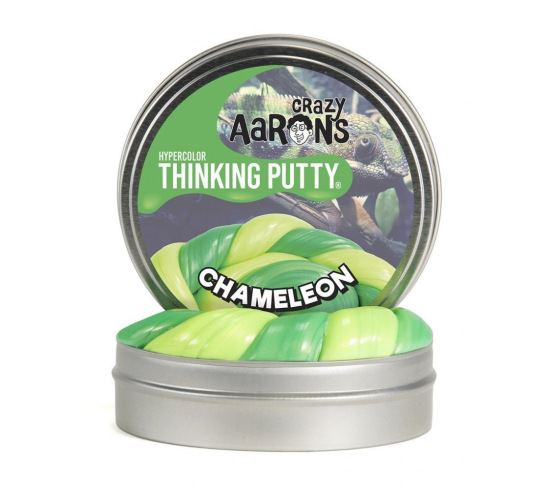 Exciting Chameleon Thinking Putty it changes from a lush, tropical green into a bright fluorescent yellow right before your eyes. Includes 3.2 ounces of putty in a metal container.