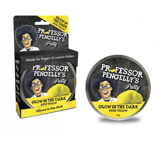 Tin includes 3.2 oz of neon yellow glow putty. Neon yellow day or night.