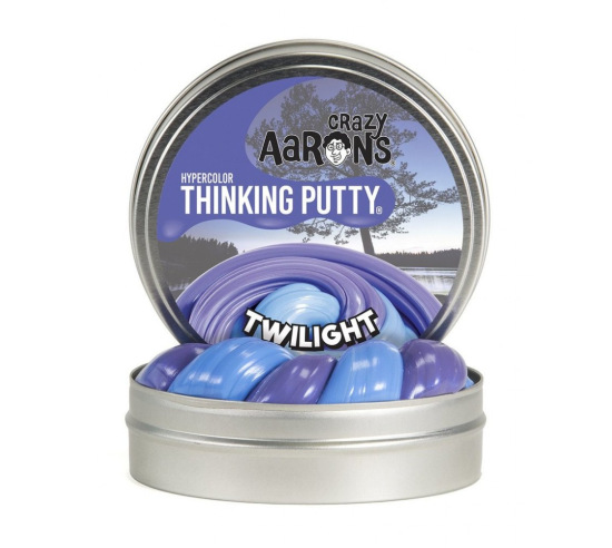 Inspired by beautiful shades of twilight skies. Thinking Putty never dries out! Contains no latex, gluten, wheat compounds, or phthalates. Made in USA. 3.2 ounces in a metal container.