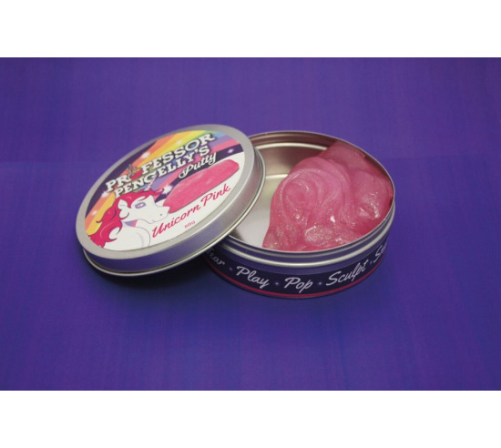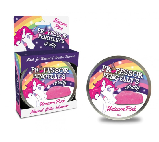 Professor Pengelly's Unicorn Putty provides a glittery pink shade of putty for stress relief. Never dries out. Includes 3.1 oz in metal tin.