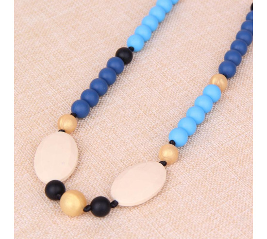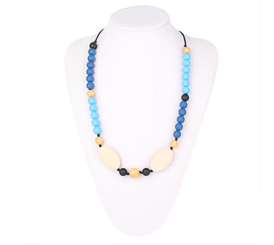 Convenient and fashionable chew necklace. 32" in length. This stylish necklace is made from FDA approved food grade silicone and includes a safety breakaway clasp. Dishwasher safe for easy cleaning. Not recommended for heavy chewers.