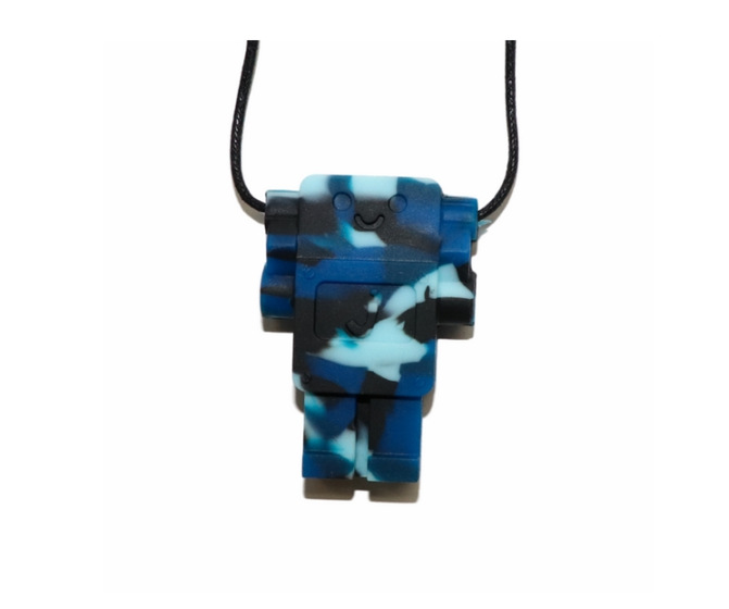 The Robot chew necklace is a reliable and comforting friend your child can rely on when big emotions threaten to cloud their day. The silicone robot pendant on this necklace is available in a range of their favorite colors and is recommended by Occupational Therapists as a tool your child can use independently to develop effective control of their nervous system responses.