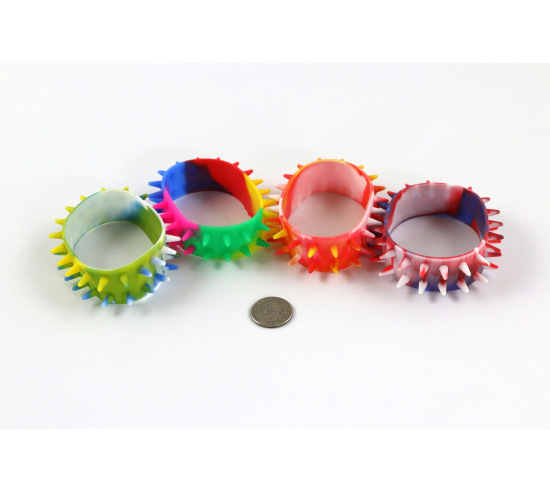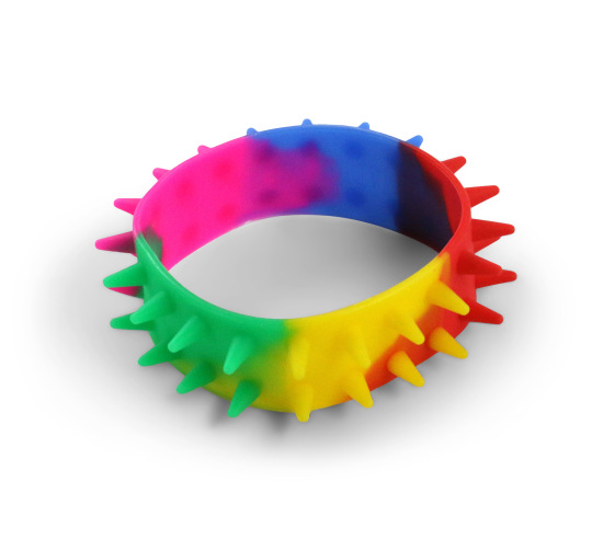 Stretchy wrist band features an array of firm spikes. Great as a discreet fashionable fidget. Comes in randomly assorted colors, order more than one for a variety. One size fits all.
