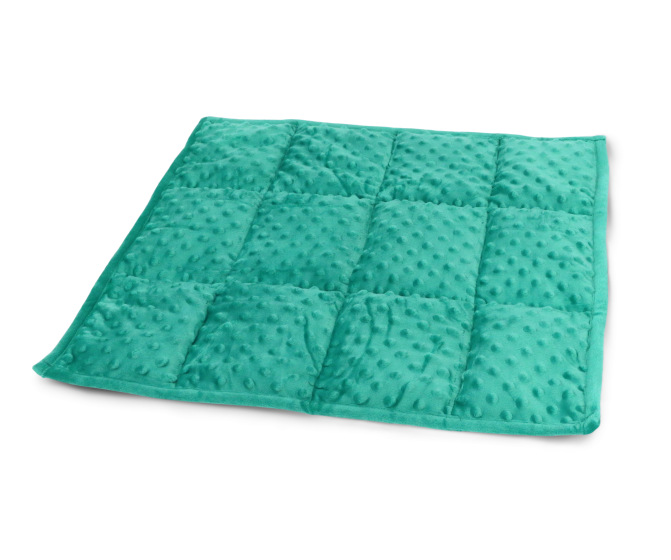 Weighted lap pads help anxious children to feel calm and grounded. Sensory fabric has soft suade-like feel with raised dots for maximum texture experience. Turqoise-green lap pad measures 19" x 22" and contains approximately 7lbs of weighted filler material.