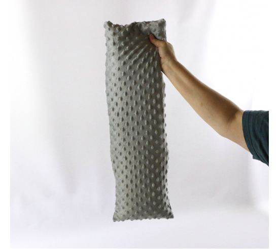 This plush silver-colored lap pad will provide calming relief to children and adults on the spectrum or with ADHD. Lap pad can also be heated or cooled for additional sensory stimulation. Filled with flax seed, lavender, peppermint, lemon balm and other herbs, also provides aromatherapy. Longer length lap pad can be used on the shoulders as well. 24" long, 6" wide. Made in U.S.A.