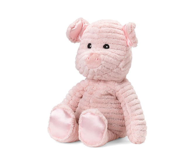 A comfy and cute weighted pink pig. Warmies are made with the softest fabrics and silky satin details that add an elegant touch while providing a tactile feel your child is sure to love.