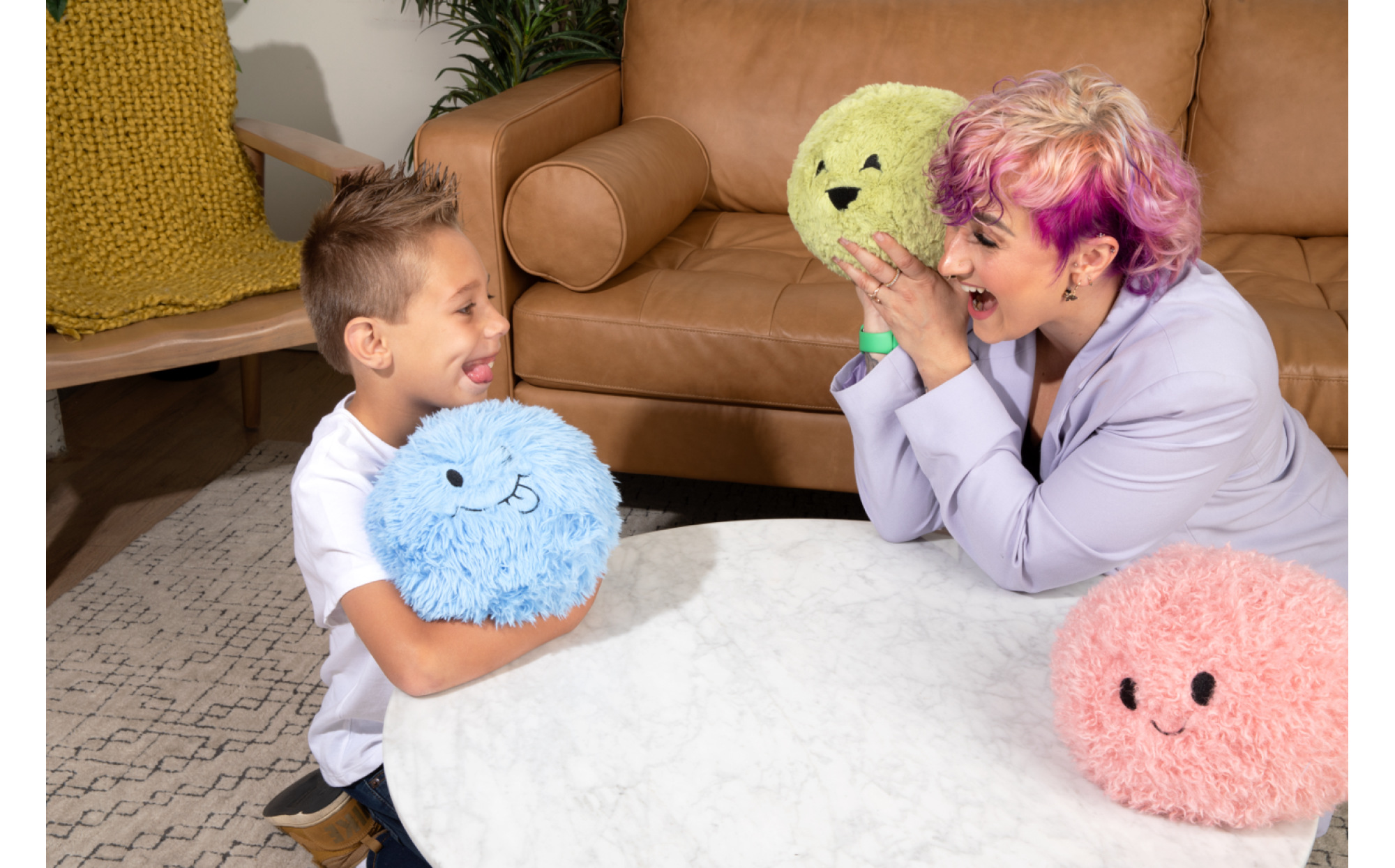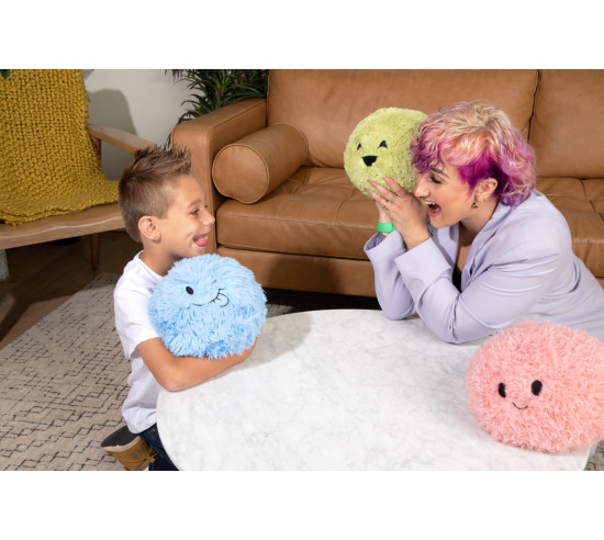 How to use: Hold or hug your Hug Ball and feel it hugging you back with its gentle Deep Touch Pressure. Connect with each face and use the faces to express emotions and needs. Enjoy the feeling of each Hug Ball’s soft, sensory textured plush as you play. (P.S. Feel free to trim the shaggy plush with small scissors if you'd like the faces to be more prominent. We hand-trim each Hug Ball, but you may have a different shagginess preference!)