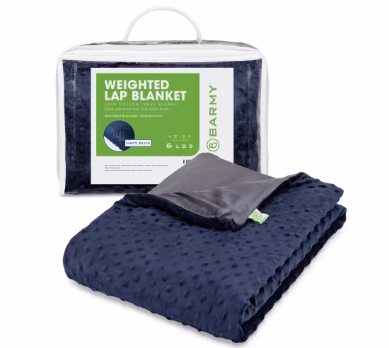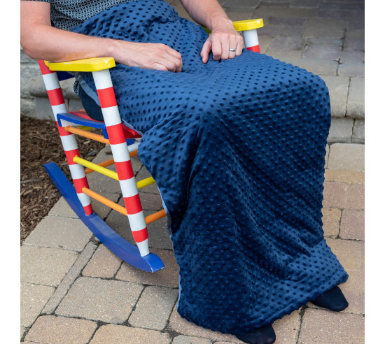 The Weighted Lap Blanket is 6 lbs. and 48 x 24 inches. Includes a removable, washable, dual-sided covers made from sensory minky dot on one side and cooling viscose derived from bamboo fabric on the other side. 100% breathable cotton and sturdy stitching.