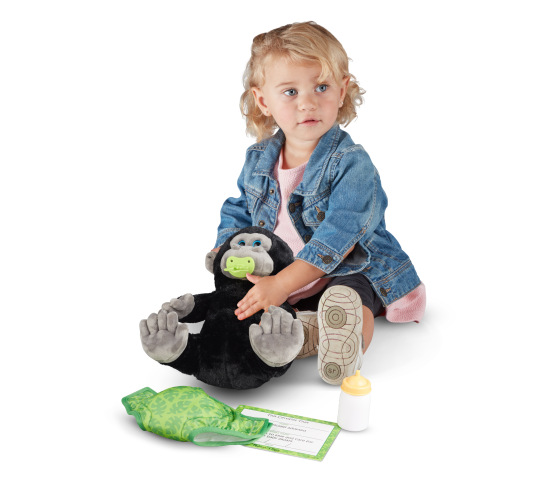 A reusable activity card has an adoption certificate to fill out, a care checklist, and fun facts about baby gorillas in the wild. Kids two and older will love taking care of their very own baby animal. Approximately 11 inches tall.