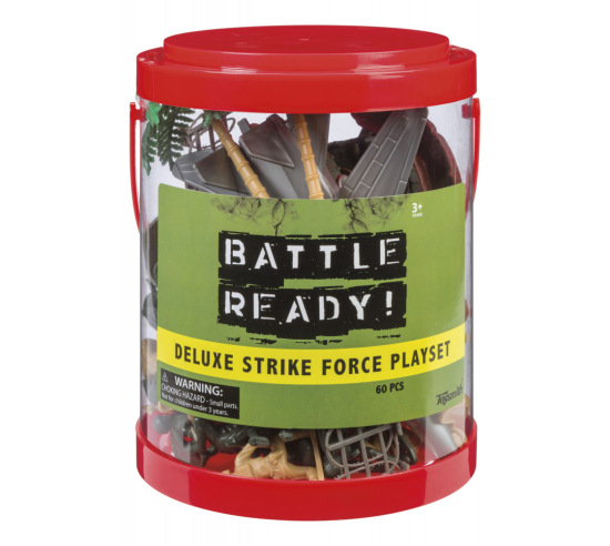 This Strike Force set will be in frequent use in your playroom or sand tray. Includes 2" soldiers, vehicles, flags, palm tree and more. Plastic pieces in convenient tub.