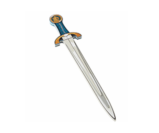 Made from sturdy and rugged high-quality EVA foam, this vividly-colored blue knight sword is worthy of battle in your playroom. Designed for safety with a feathered point for flexibility. 22" long.