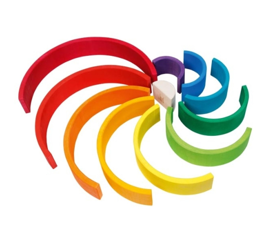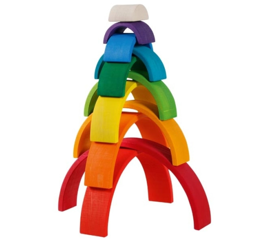 This cheerful rainbow made of maple wood lets children stack and sort while playfully learning sizes, sequences and colors. There are no limits to building magical worlds in open play - simply a classic among wooden toys.
