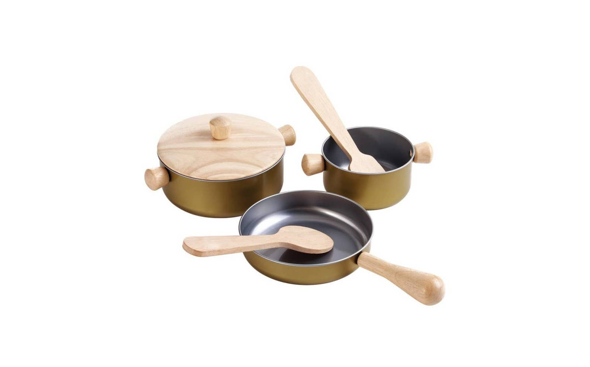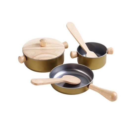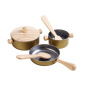 Introduce children to the joys of imaginative play with this charming wooden cooking set. The set includes a frying pan, pot with lid, saucepan, spatula, and a turner, everything little chefs need to start cooking up fun.