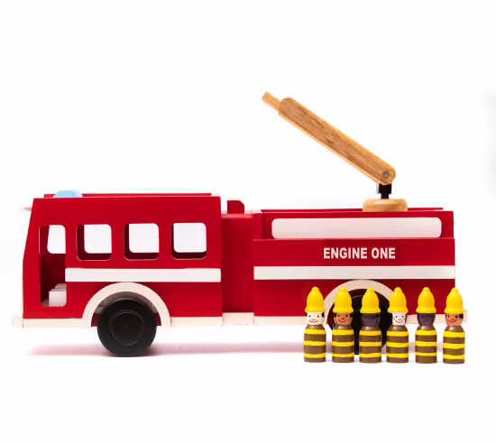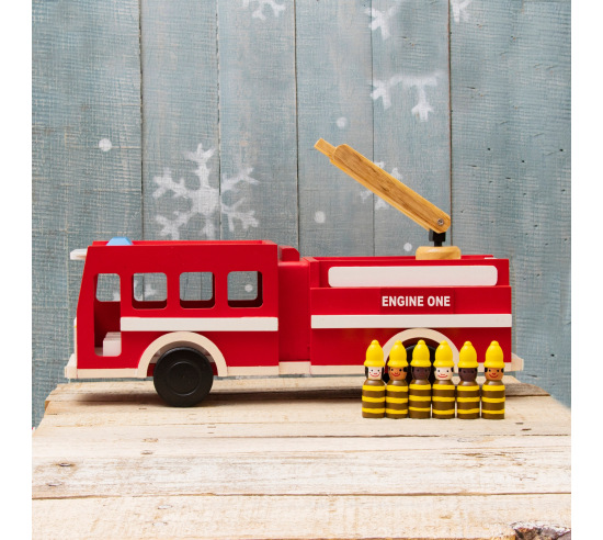 Wooden Fire Truck with Firefighters Playset