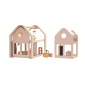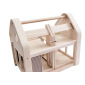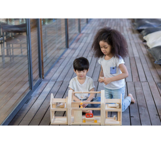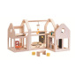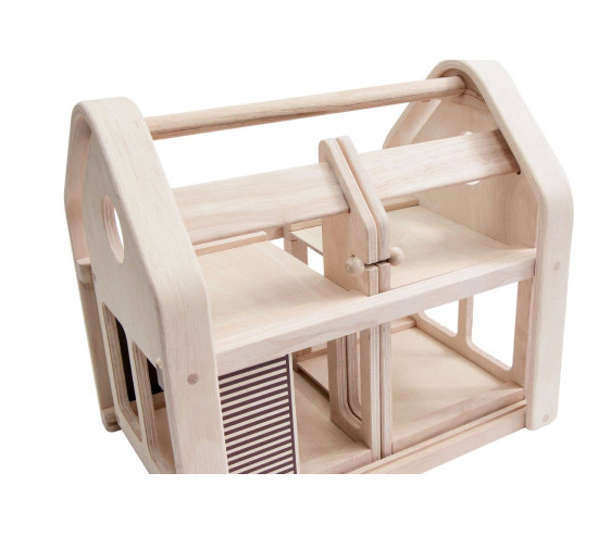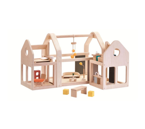 This dollhouse is great! I love the design and portability. All the furniture is well made and looks very nice. I bought this for its portability and durability. I like how open it is to make play very easy for children to use. My only issue is that it is expensive. It’s compact size makes it easy to store. I also like that it can be configured in different ways and it has an upper level. This would be a great addition to a play therapy room. It doesn’t come with dolls, which wasn’t an issue for me because I already had purchased several diverse wooden doll family sets.
