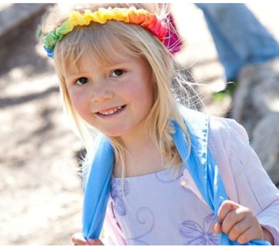 A stretchy soft elastic made of silk with four ribbons and a rose. Lovely dress up piece for endless creative play. Pair with any playsilk for a creative head covering and stretchy enough to fit around the waist too.
