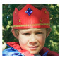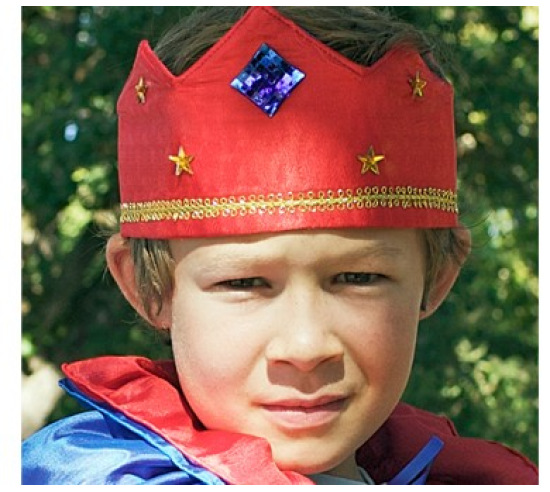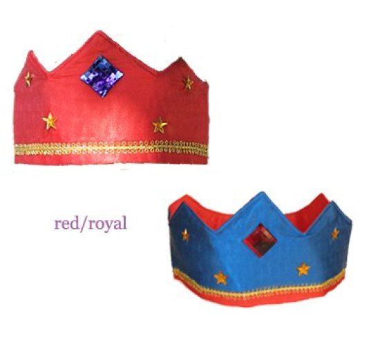 A touch of royalty for dress up or role play, this reversible silk crown is embellished with jewels. A shiny crown in red and blue.