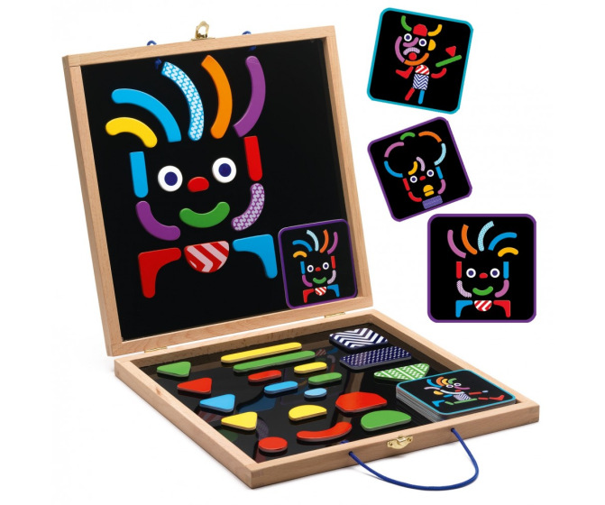 How many different faces and poses can your clients make with this 35 piece magnetic set? Includes twenty design cards for inspiration or to help teach feelings and empathy. Comes in a magnetic wood carrying case for storage. Recommended age 4+. Storage box measures 12"x 12"x 1 1/2".
