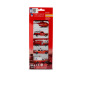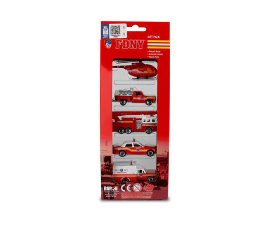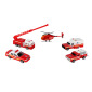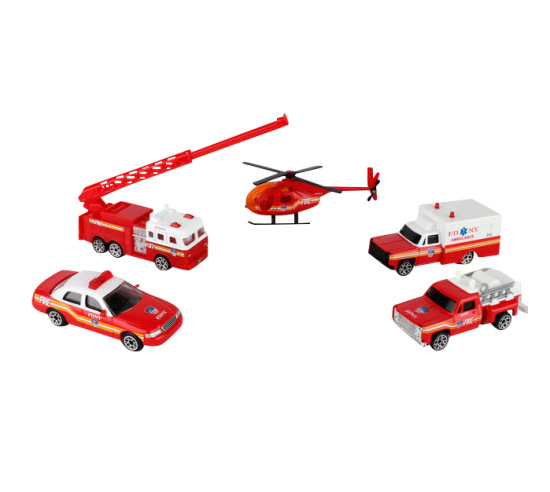 Superior quality set of vehicles includes an ambulance, fire chief car, ladder truck with extending ladder, helicopter, and truck with hose. Working wheels and fixed tires. You might want two sets, one for play and one for your mini shelves. Average size 3" long.