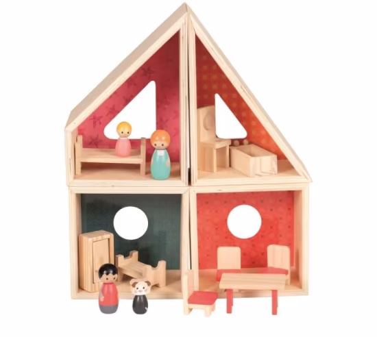 Includes: Four room dollhouse, three peg figures, a dog, a big bed, a small bed, three chairs, a table, a bathtub, a sink and a closet. Built with safe materials and passes rigorous European and US Safety tests.
