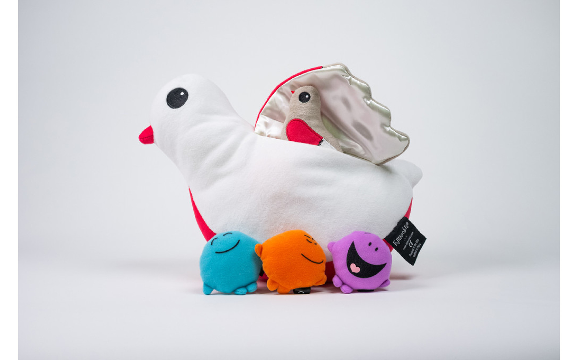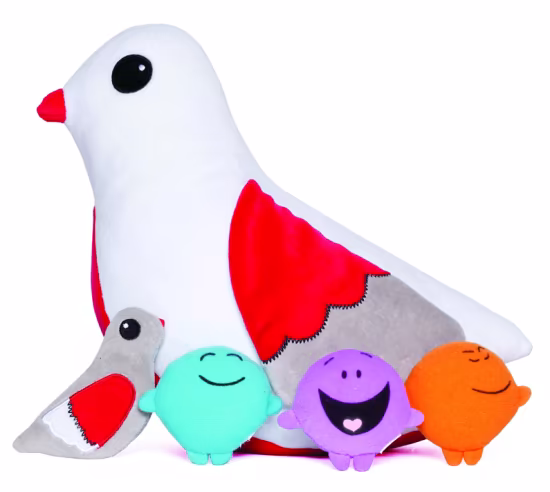 - The 3 feelings (Happy, Proud, and Hopeful) and Turtle Dove can be stored in pockets under Lovey Dove’s protective wings
