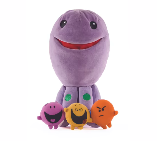 - 3 feelings pillows (Happy, Frustrated, and Silly) that can be stored in her big smiling mouth.