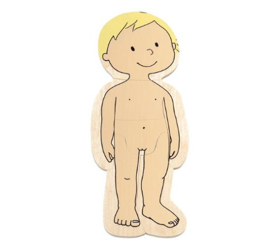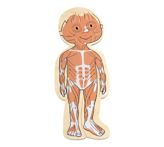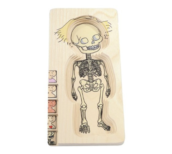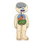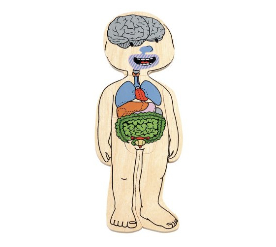 A 35 piece layered puzzle with each layer showing major body parts such as skin, organs, bones. Five layers with seven pieces each make for easy and fun assembly while teaching children about the relationship between brain and body, private parts and body functions. Quality wood puzzle measures 5.5 x 11.5 inches