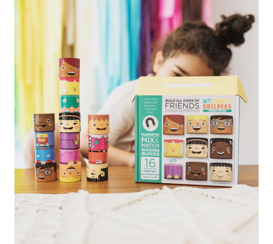 THOUSANDS OF COMBINATIONS of mix-and-match magnetic blocks create endless possibilities for 1-of-a-kind characters and myriad family representations. They serve as great conversation starters for talking to your kids about diversity, gender roles, acceptance, and empathy.