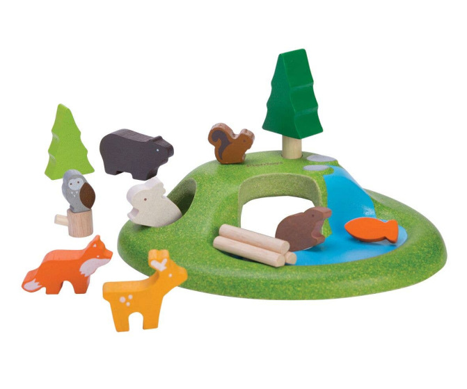 Get in touch with nature and travel through a forest to see some amazing animals! The Animal set consists of an owl, a squirrel, a beaver, a deer, a rabbit, a fox, a bear, a fish, 4 timber logs, 2 trees ,and a mountain that features a cave and waterfall.