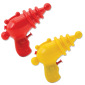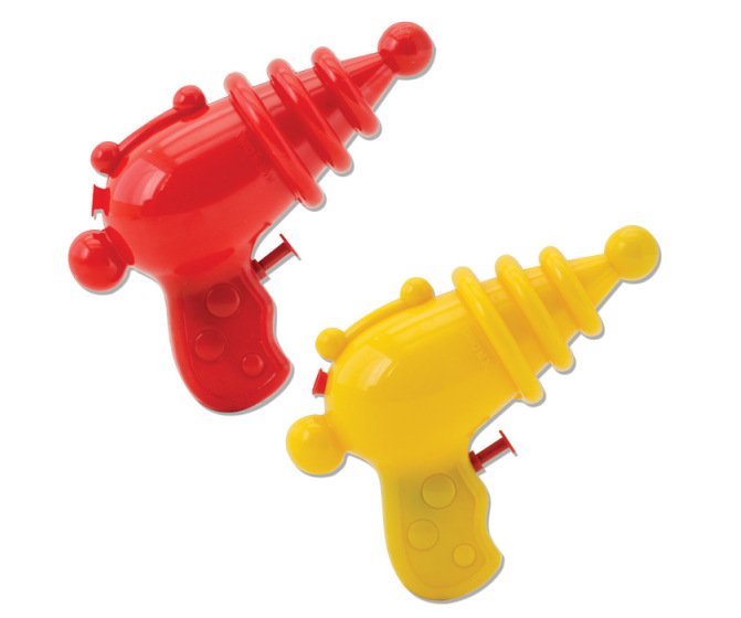 A set of two ray guns for play therapy. Actually squirt guns, these are a useful aggression tool that aren't realistic and don't light up or make noise. Each gun is 6" long, lightweight, and perfect for smaller hands.