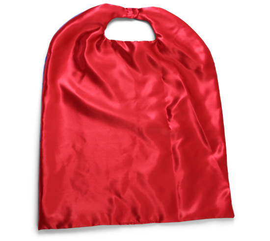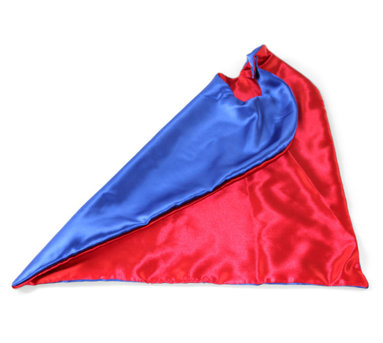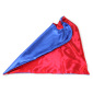 This blue and red reversible cape is like two in one. Hand made with a soft, silky fabric, your little superheroes are sure to find many uses for this in the playroom. One size fits most children. Features a hook and loop closure. Approximately 26" long.