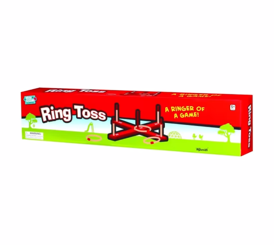 A wood platform with five posts and five natural rope rings. Children will enjoy this classic game in your playroom. Some assembly required.