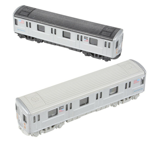 Comes in assorted colors. Seven inch long diecast metal and plastic subway cars.