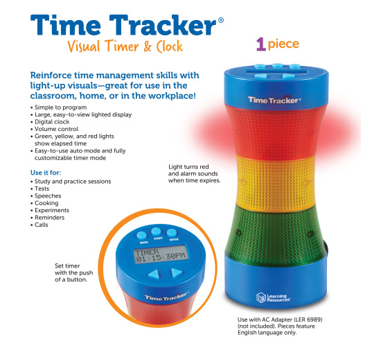 The Time Tracker Visual Timer offers a simple and effective way to manage time using bright green, yellow, and red lights, making it easier for children and adults to understand how much time is left at a glance. This visual countdown supports smoother transitions and improves time awareness without relying on traditional clocks or verbal reminders.