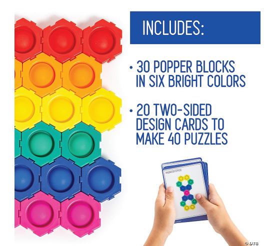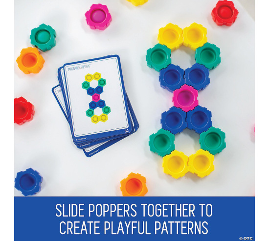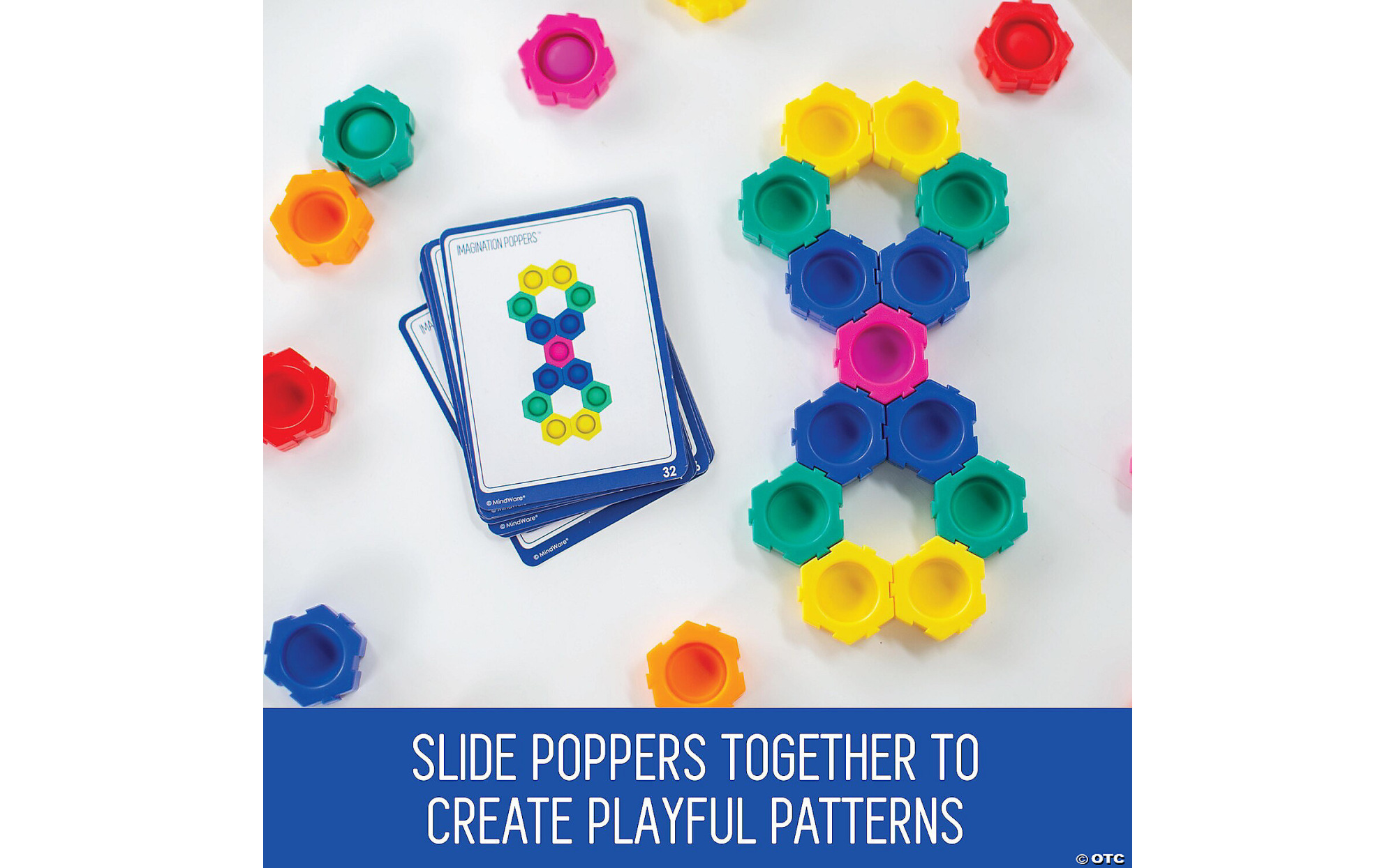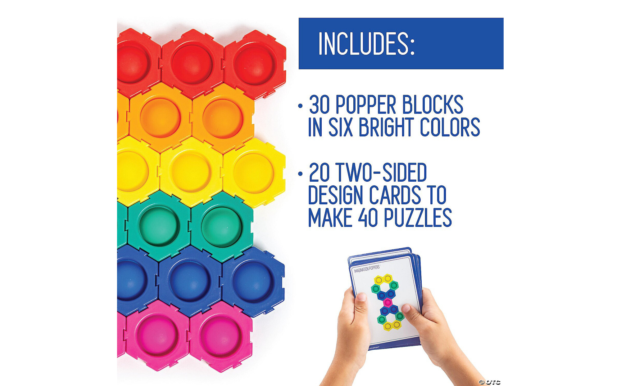 Build your own sensory popper with this versatile set designed to engage creativity and support focus. With 30 colorful popper blocks in six vibrant shades, you can create countless patterns by sliding pieces into place. Included are 20 two-sided design cards featuring 40 unique puzzles, or you can let your imagination guide you to design your own tactile creations.