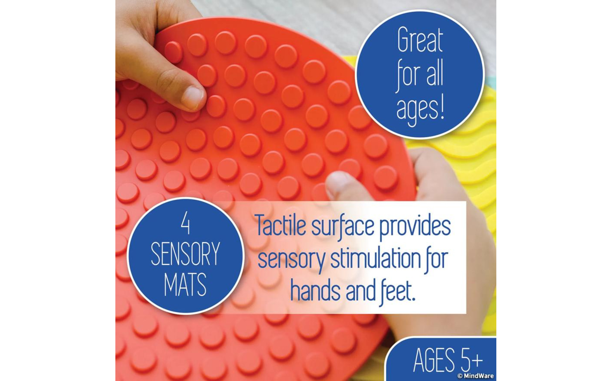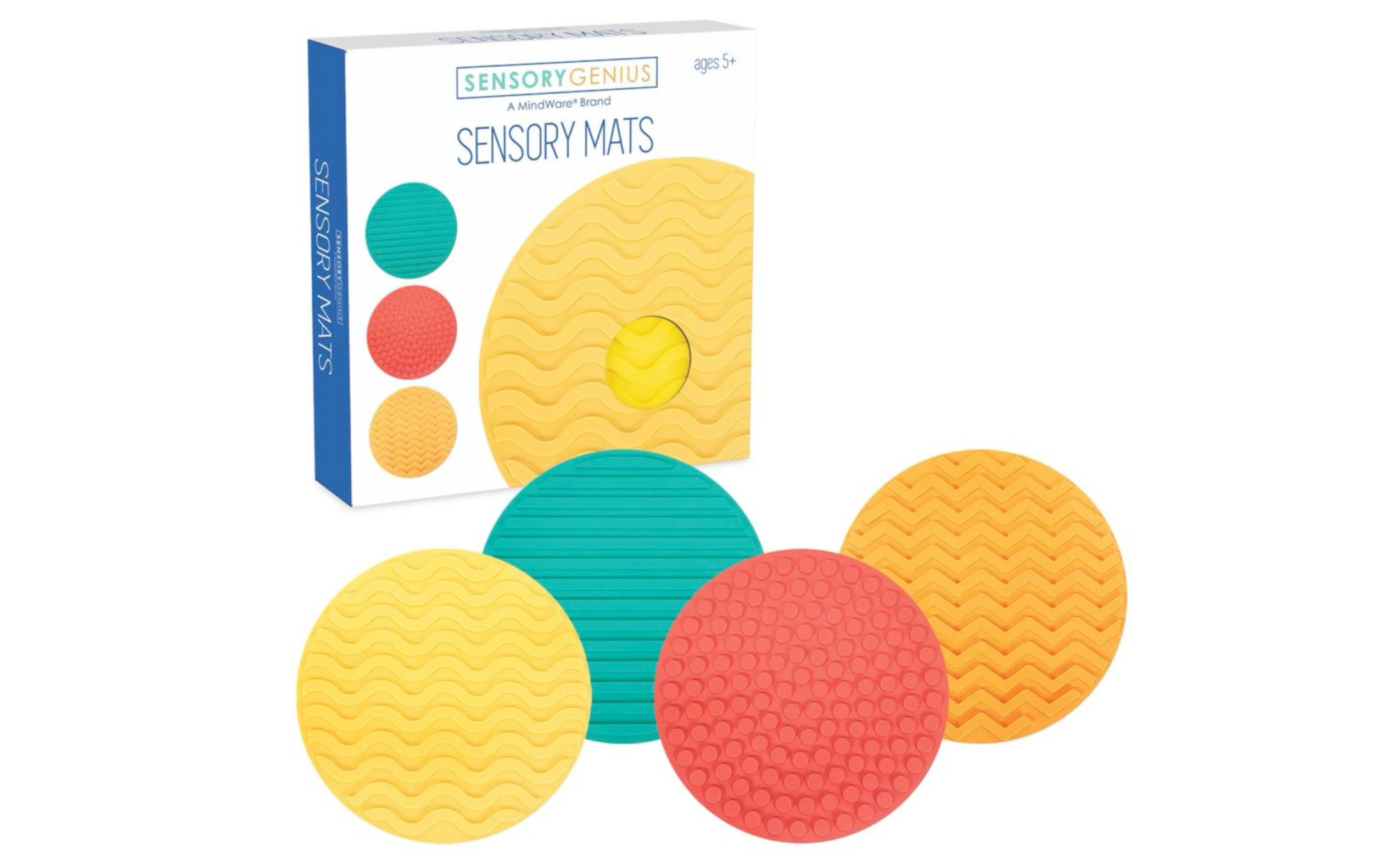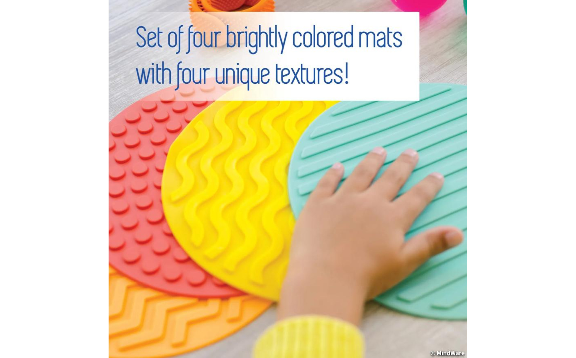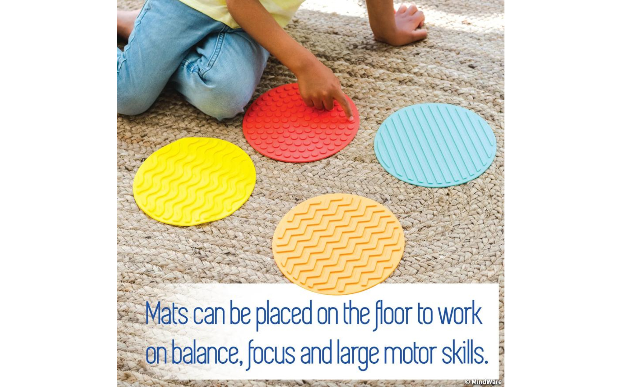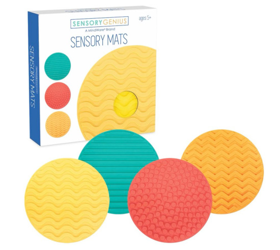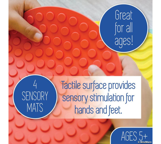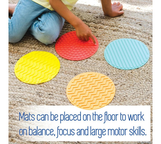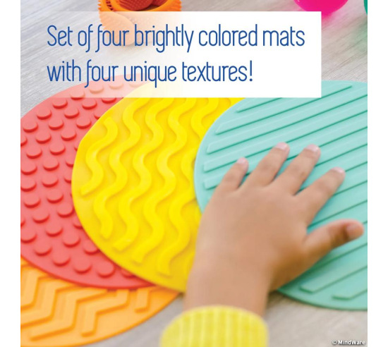 - Four colorful mats with distinct textures for varied sensory engagement